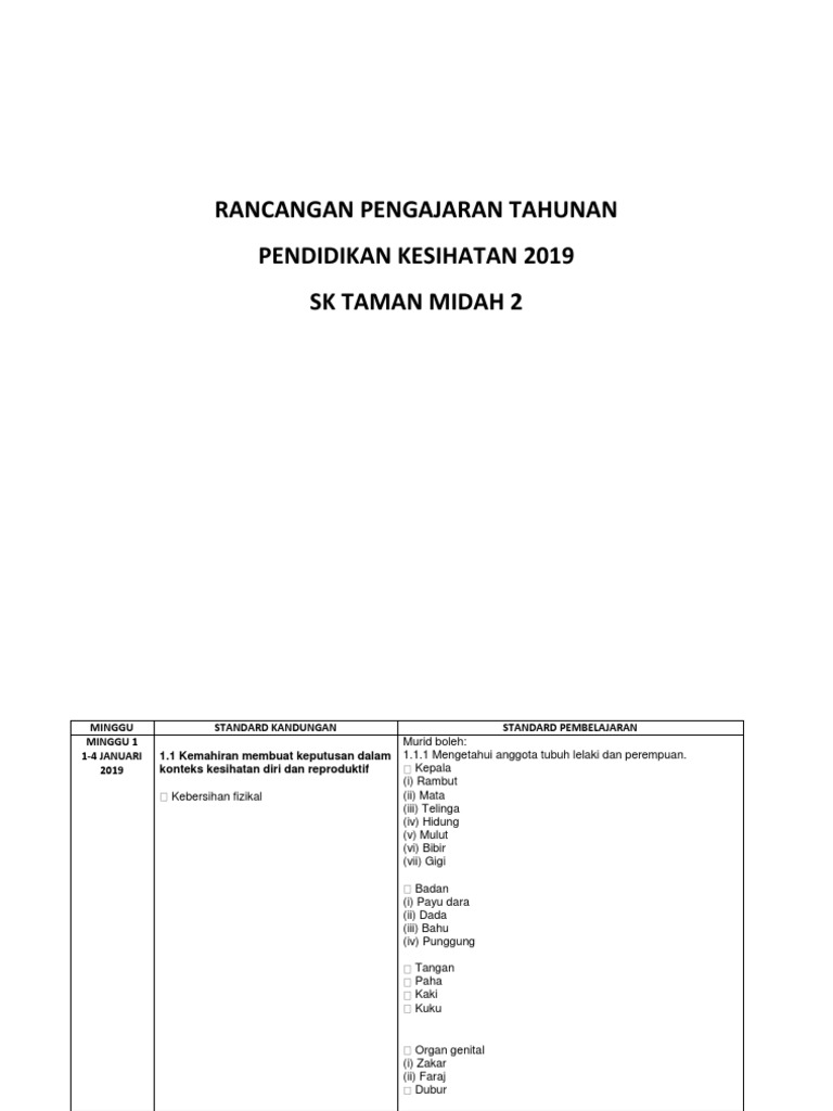 Rpt Pk 2019 Tahun 1 Asyraf from imgv2-2-f.scribdassets.com Kesihatan fizikal kesihatan diri dan reproduktif 1.1 memahami aspek fizikal lelaki dan perempuan. 100%100% found this document useful, mark this document as useful. Alhamdulillah.kpd yg sdg mencari rpt pjpk tahun 3 2019.baru saja siap.ambil masa utk siapkan sbb benda baru.kena mula dari awal. Sy dh lm xmengajar pk. Savesave rpt sn t1 2019 for later. Pada setiap awal persekolahan ataupun hujung tahun, antara bahan persediaan utama yang akan disediakan oleh guru adalah rancangan pengajaran tahunan ataupun lebih dikenali sebagai rpt. Penunjukkan dosen penguji sidang kerja profesi semester gasal tahun akademik 2018/2019 pogram studi manajemen upj. 800/6171/bkd tentang pemberkasan usul penetapan ni pppk tahap 1 tahun 2019 tertanggal 10 desember 2020 yang ditujukan kepada kepala dinas pendidikan, kepala dinas kesehatan.